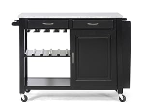 Baxton Studio Quebec Black Kitchen Cart With Granite Top By