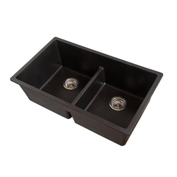 Thermocast Kitchen Sink Black Acrylic 33 Inch 4 Hole Double Bowl