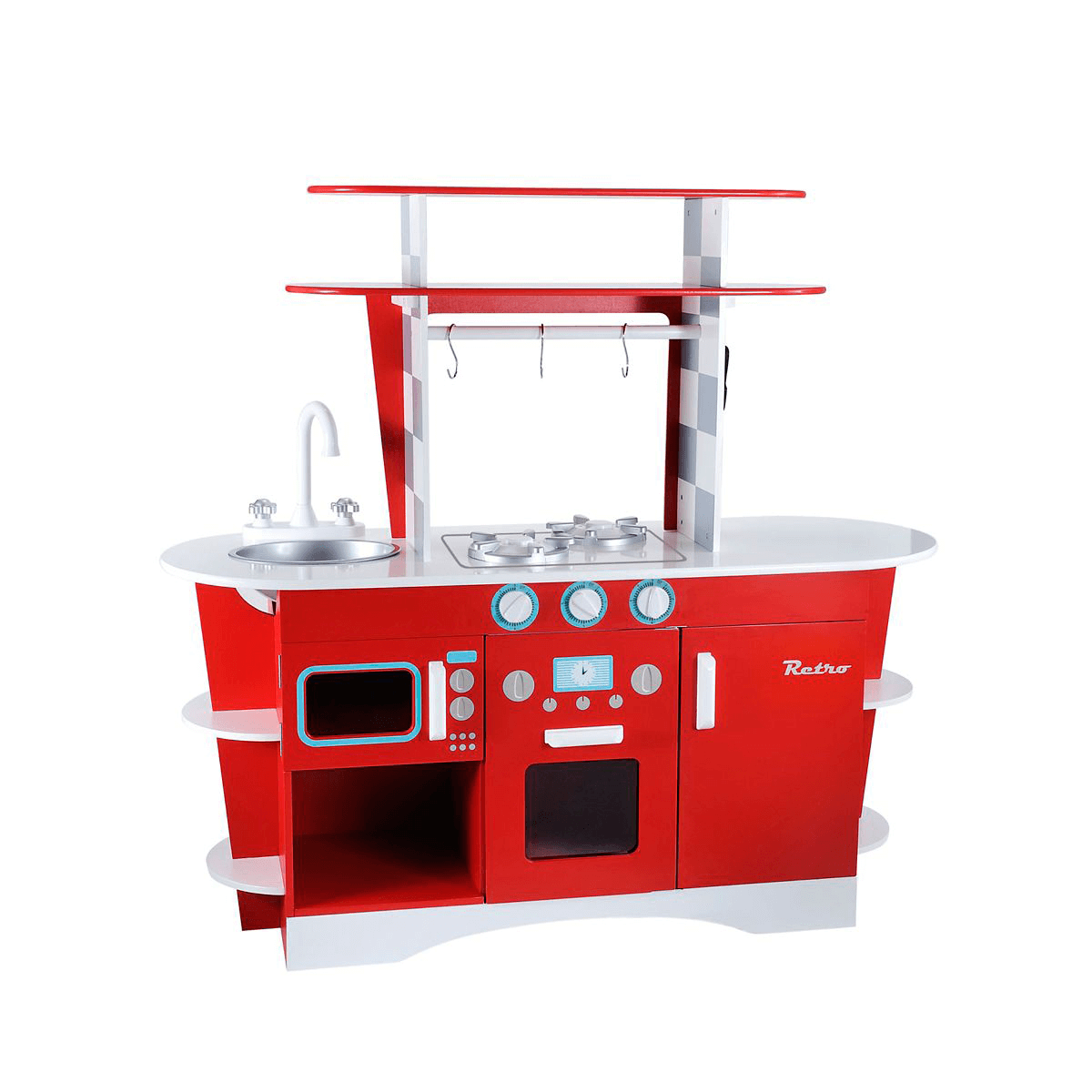Ideal for encouraging young imagination and social skills it features a curtain under the sink an oven.
