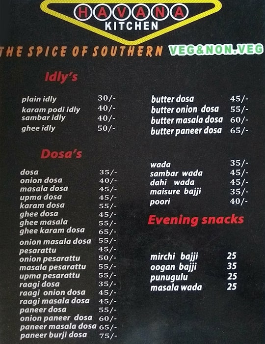 Menu Of Havana Kitchen Kukatpally Hyderabad Dineout Discovery