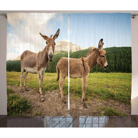 Donkey Curtains 2 Panels Set Two Cute Donkeys Standing On The