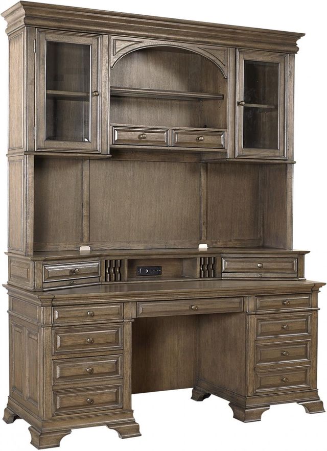 Bungalow Jr Executive Credenza Hutch In Driftwood Taupe Finish