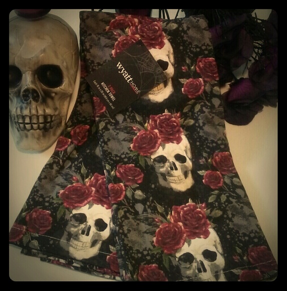 Skull Hand Towels Gothic Skull Towels Goth Kitchen Halloween Etsy