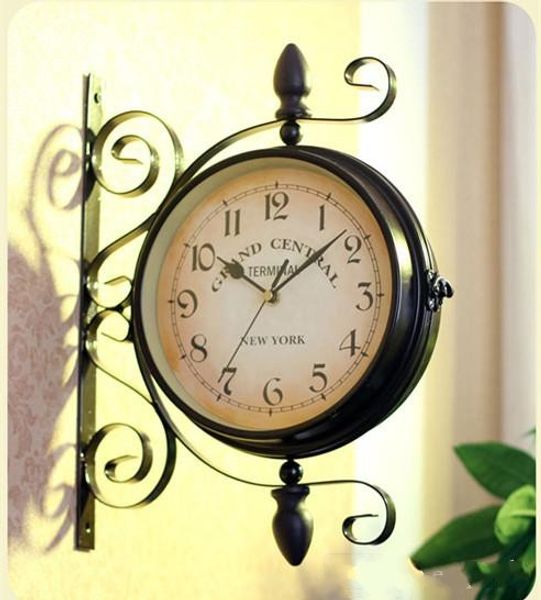 Vintage Decorative Double Sided Metal Wall Clock Antique Style