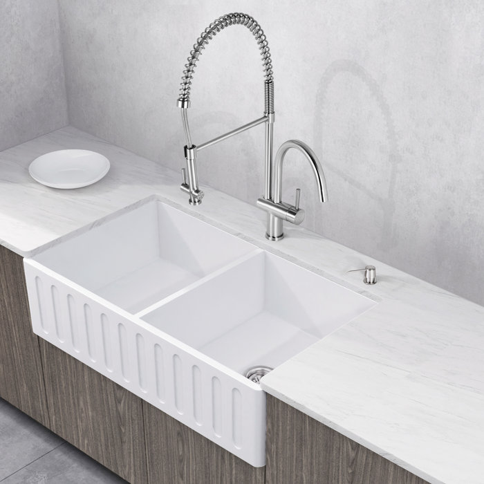 Vigo Matte Stone 33 L X 18 W Double Basin Farmhouse Kitchen Sink